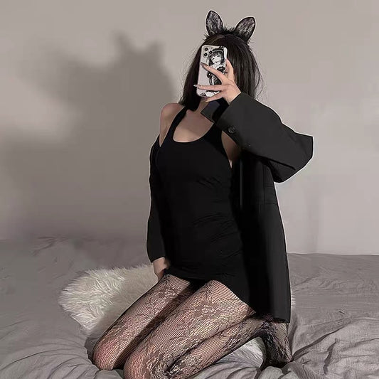 Black Open Crotch Stockings